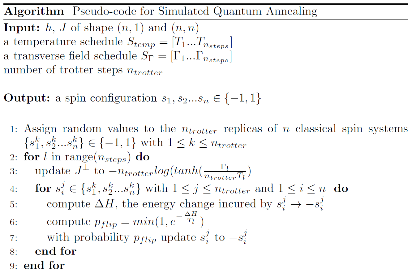 SQA is built upon a heuristic which aims to minimize quantum Ising Hamiltonians.